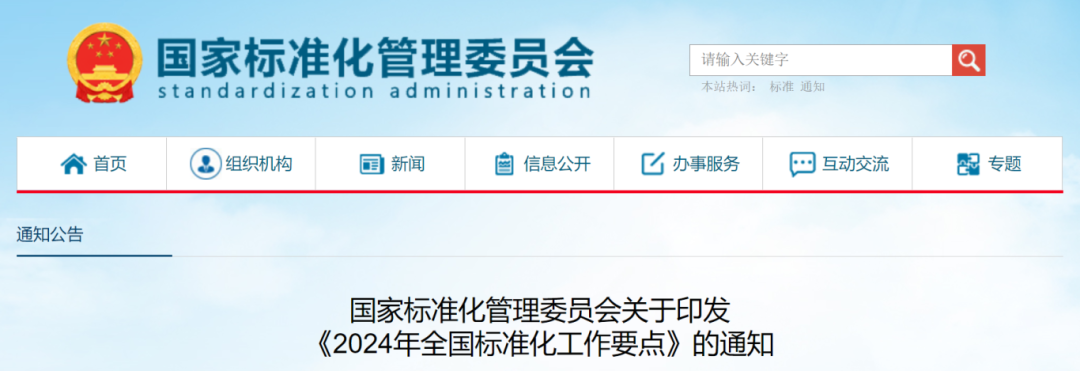 日前,《国家标准化管理委员会关于印发〈2024年全国标准化工作要点〉的通知》正式发布。具体内容如下: